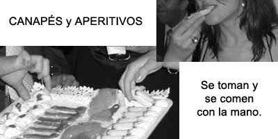 Los aperitivos y canapés, se cogen con la mano y se comen de uno o más bocados. Es conveniente tener en la otra mano una servilleta.